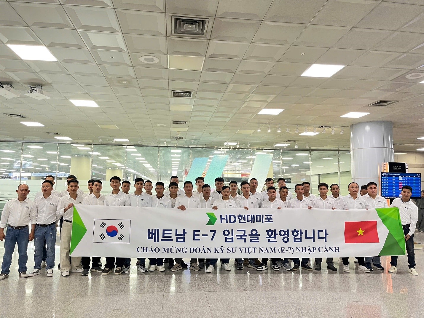 Ngày 13/11/2025, với việc đưa 44 người lao động Việt Nam- cụ thể 29 lao động Hàn xì, 5 lao động Sơn và 10 lao động Điện- xuất cảnh thành công sang Hàn Quốc làm việc tại Công ty HD Hyundai Mipo chỉ sau 2 tháng hoàn thiện hồ sơ, VJEC đã khẳng định được năng lực triển khai chương trình xuất khẩu lao động Hàn Quốc visa E7-3.